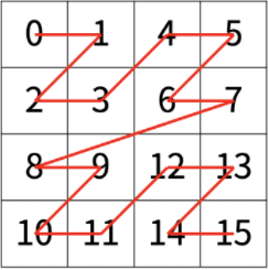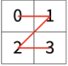 한수는 크기가 2N × 2N인 2차원 배열을 Z모양으로 탐색하려고 한다. 예를 들어, 2×2배열을 왼쪽 위칸, 오른쪽 위칸, 왼쪽 아래칸, 오른쪽 아래칸 순서대로 방문하면 Z모양이다.