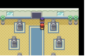 경비원 : 사천왕과 대결을 하려면, 마을의 체육관 리더를 이겨서 배지를 8개를 모아야 한다네... 배지를 모아서 오도록 하게