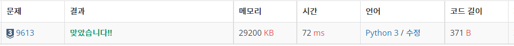 https://www.acmicpc.net/problem/9613
